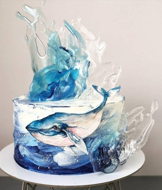 Торт с изображением синего кита