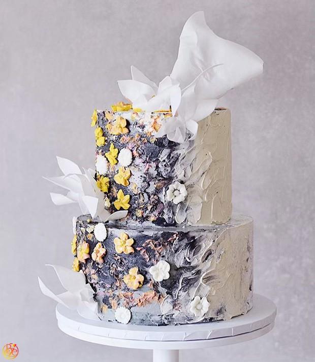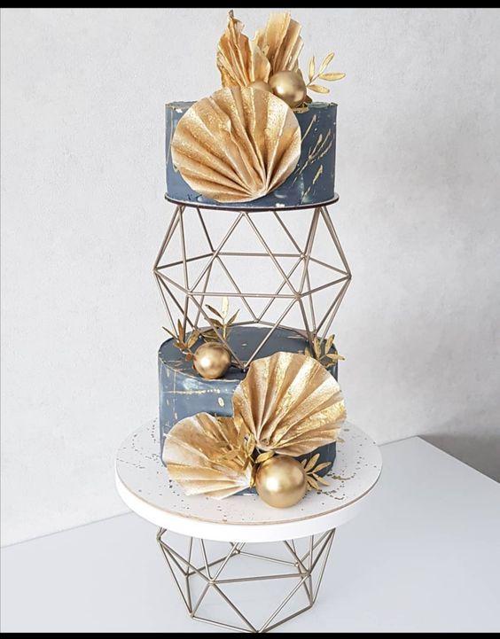 Торт с золотыми ляпами и геометрическим ярусом