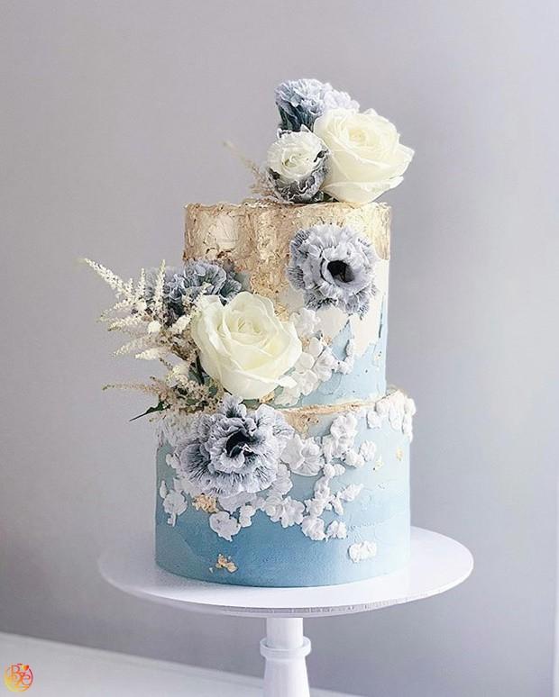 Торт изящный голубой с золотыми краями