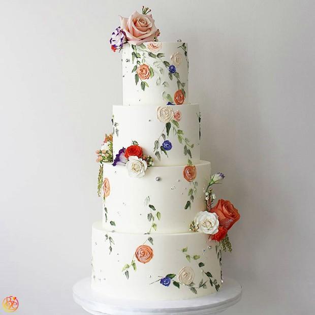 Торт свадебный с живыми цветами