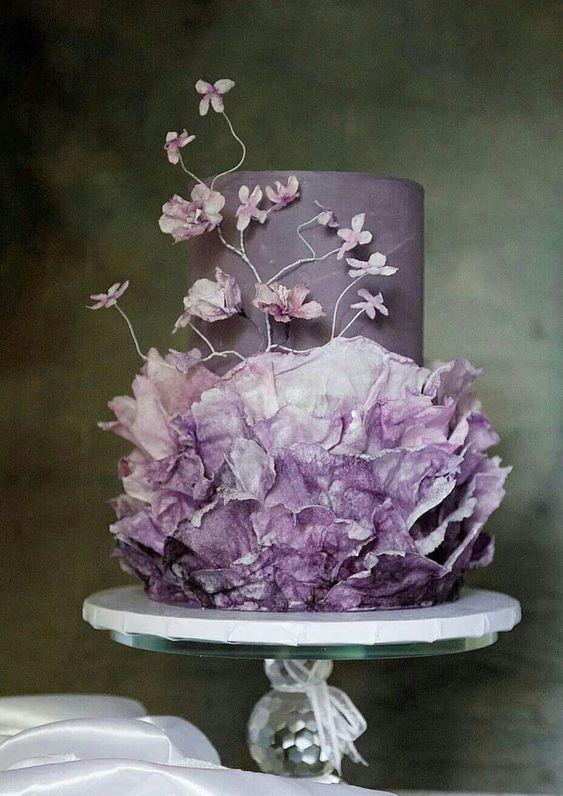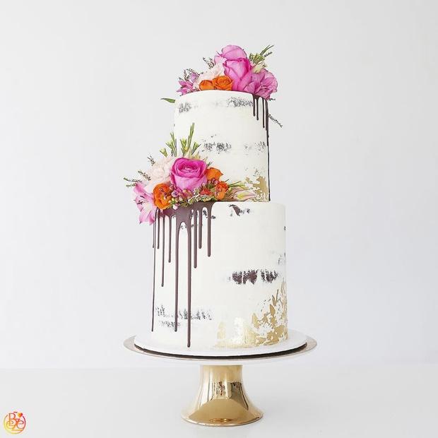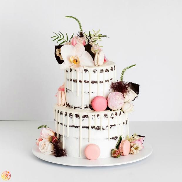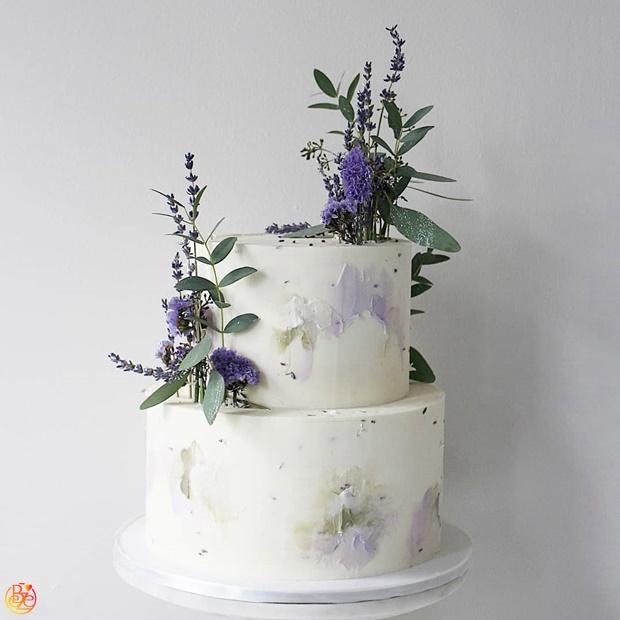 Торт белый с серебряным покрытием и букетом сухоцветов